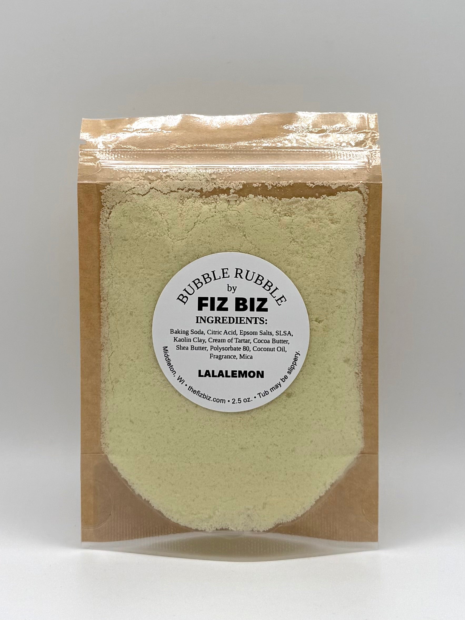 Ingredients: Baking Soda, Citric Acid, Epsom Salts, SLSA, Kaolin Clay, Cream of Tartar, Cocoa Butter, Shea Butter, Polysorbate 80, Coconut Oil, Fragrance, Mica