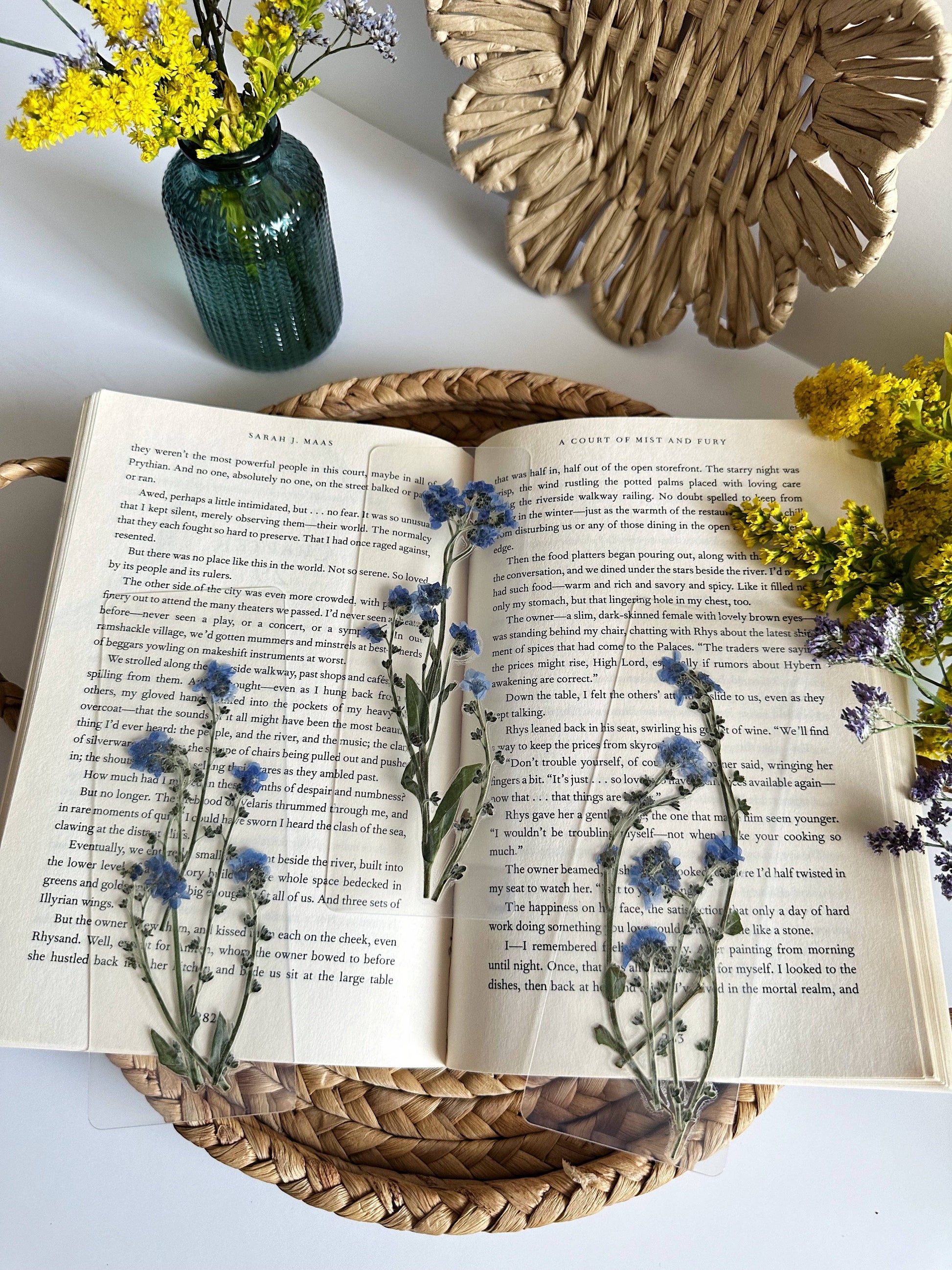 10ml thick laminating pouches. This material preserves the flowers' vivid colors, as well as protects the spines of your books.