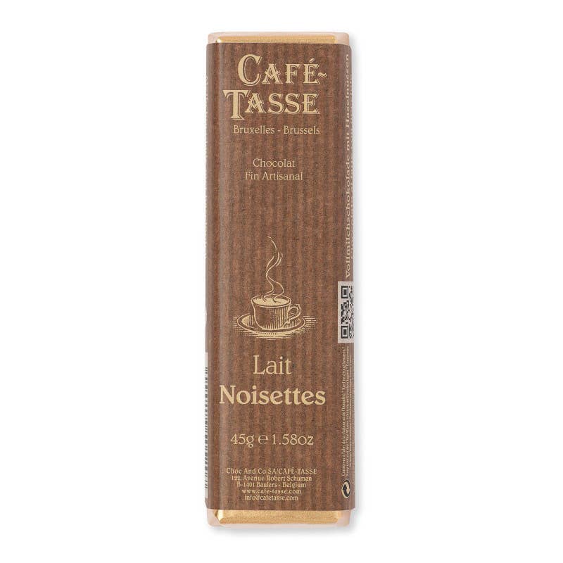 Kraft display with 15 units of 45g sticks: Milk chocolate stick, 38% cocoa, pure cocoa butter with roasted hazelnut chips.