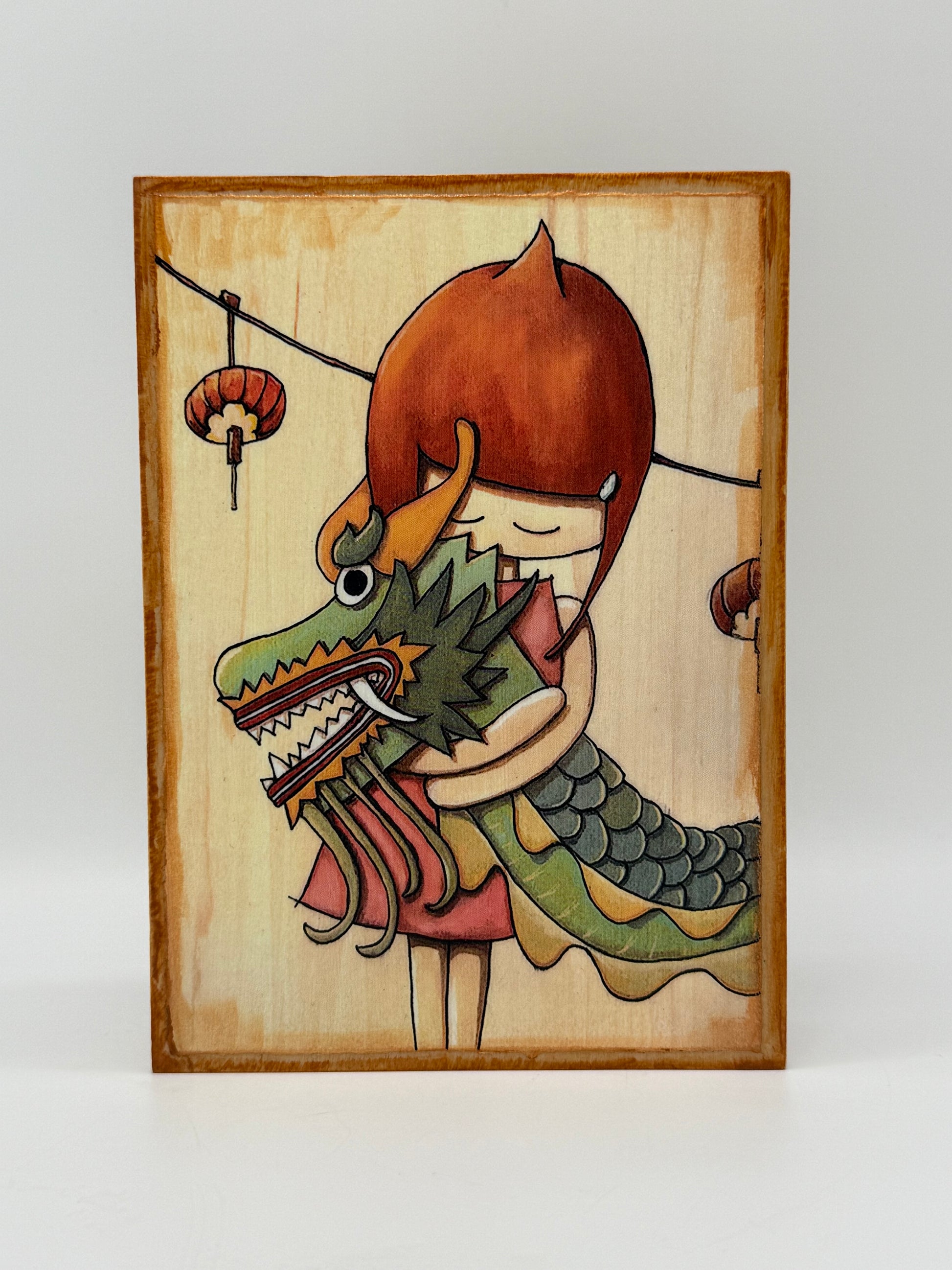 Ninjagrl Wood Mounted Print - dragon