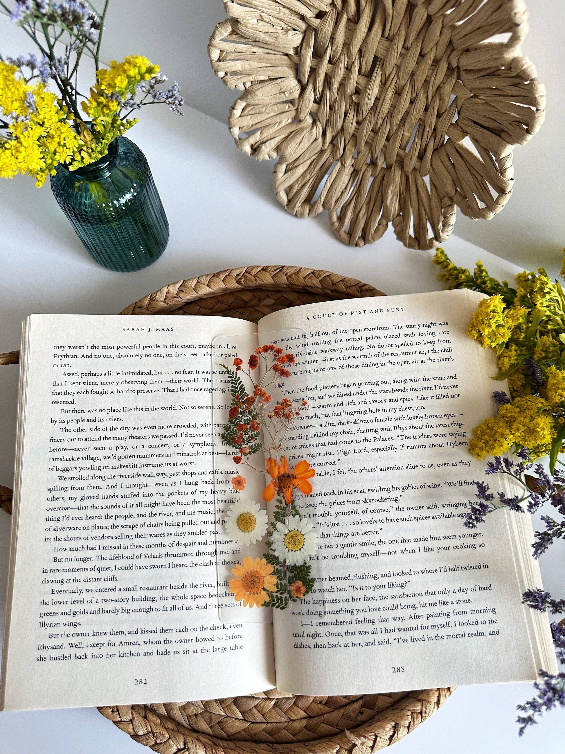 10ml thick laminating pouches. This material preserves the flowers' vivid colors, as well as protects the spines of your books.