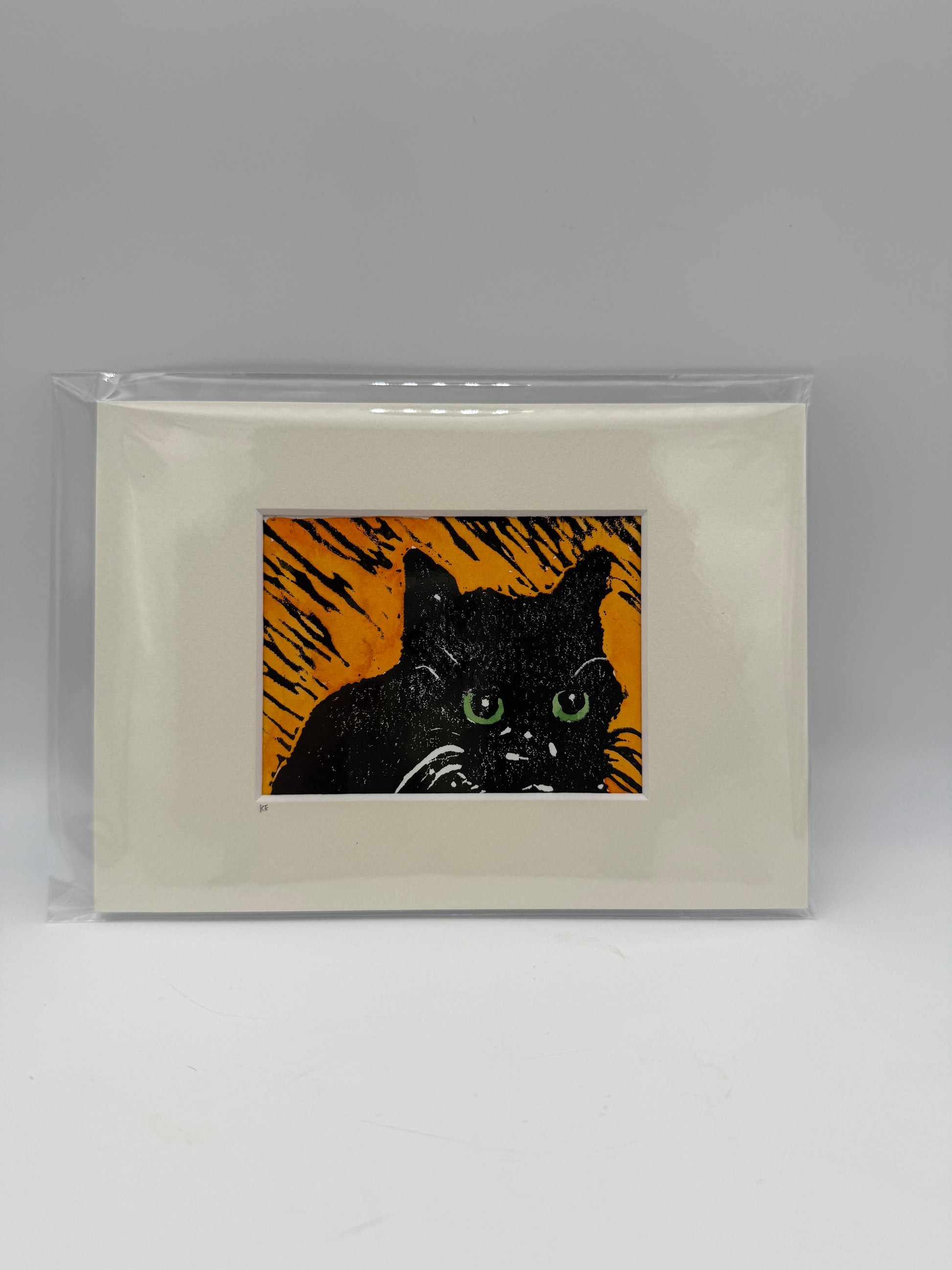 5X7 print, original linocut, hand painted by local Wisconsin artist Kerry Ervin.