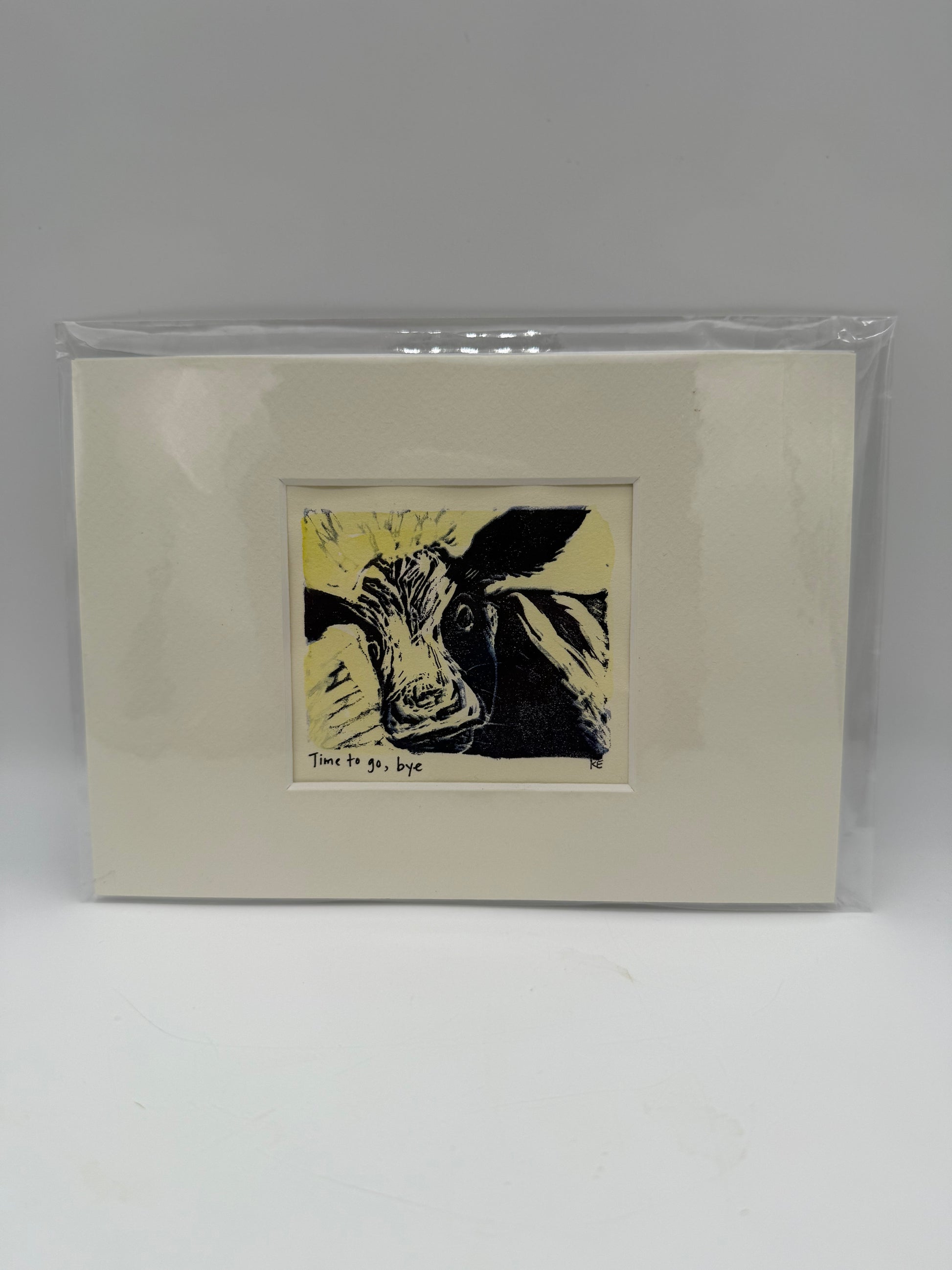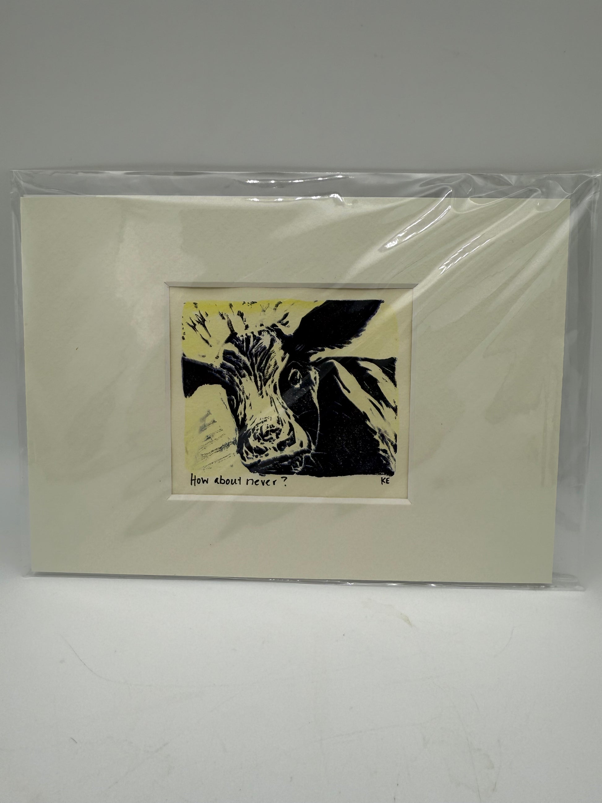Original Linocut Matted Print 5X7 - Mad Cow