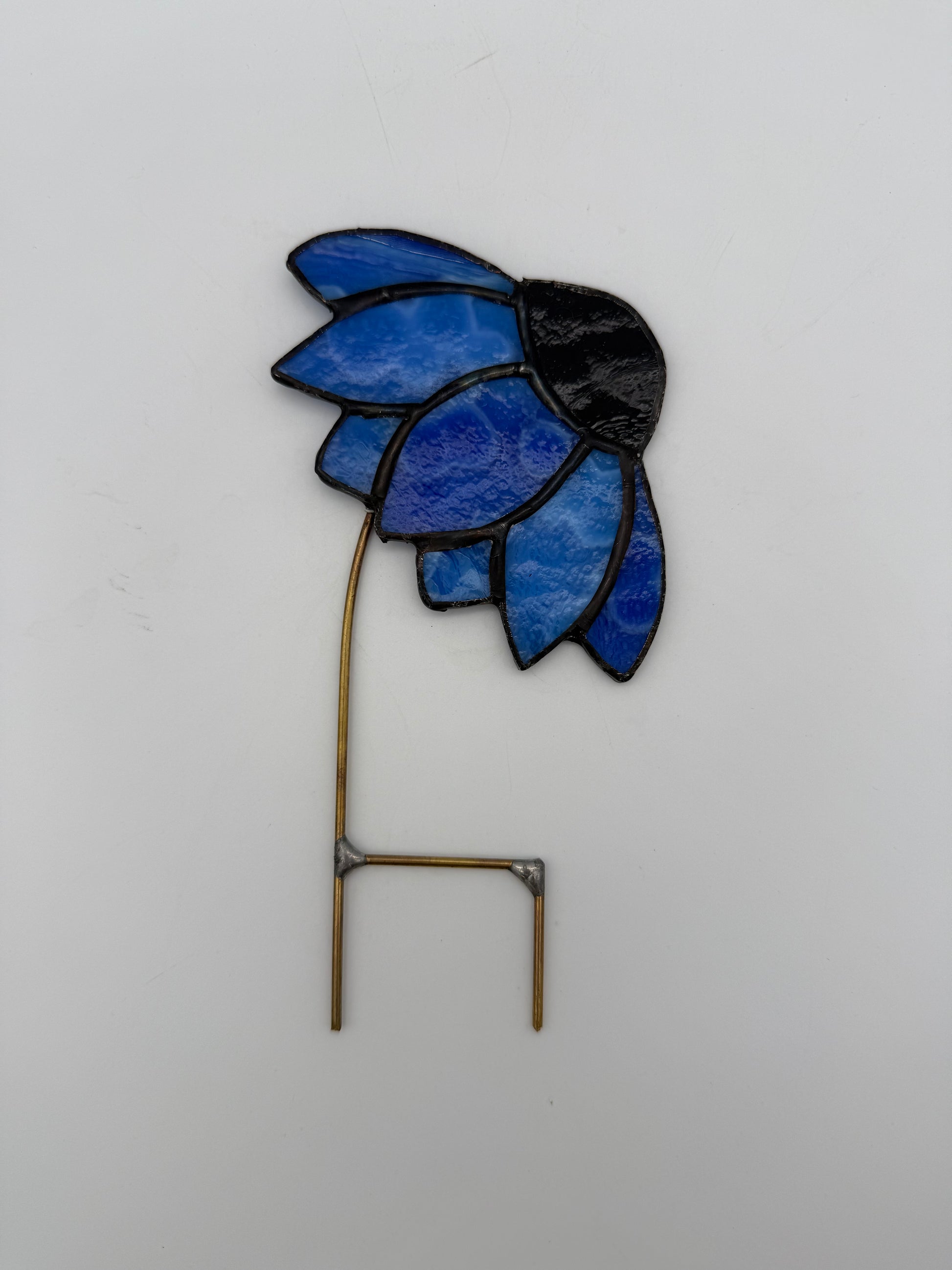 Small stained glass coneflower on rod to plant in flower pot or ground.